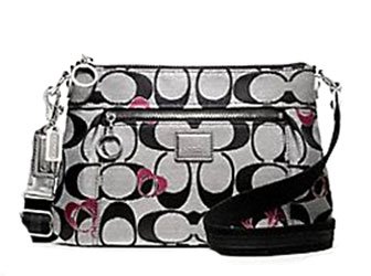 Coach Signature Poppy Hearts Swingpack Messenger Bag Purse Tote 46574 Black White